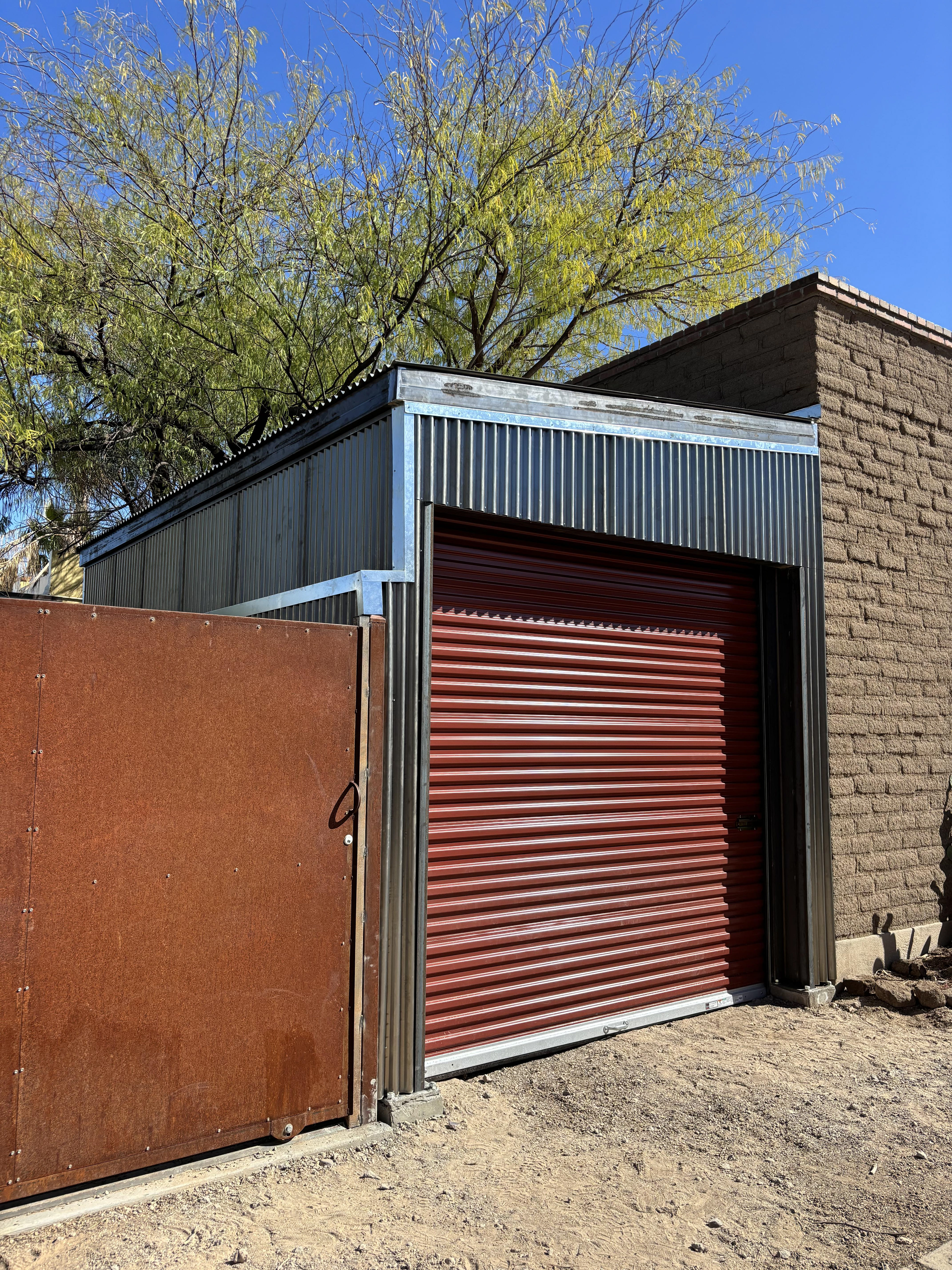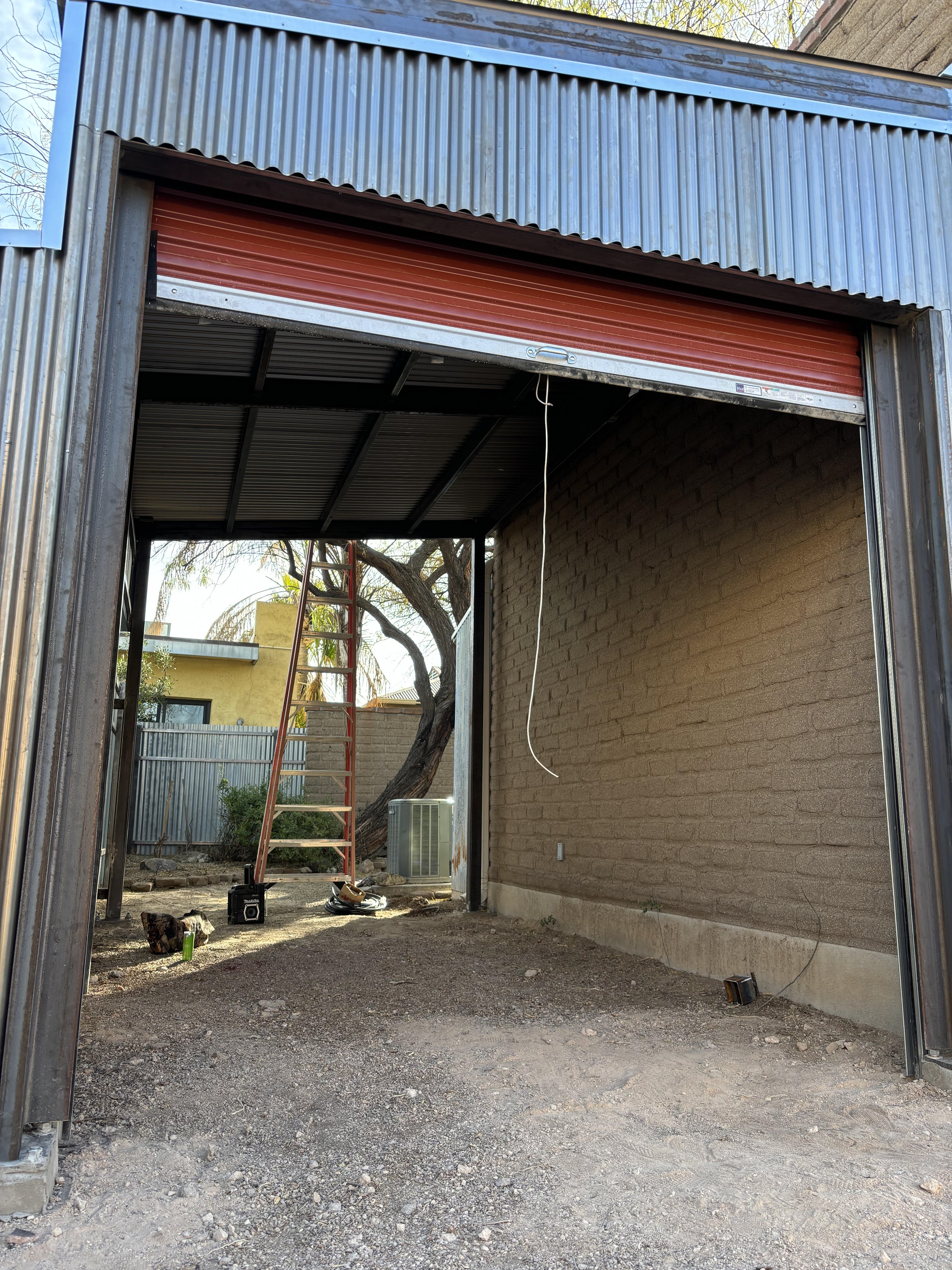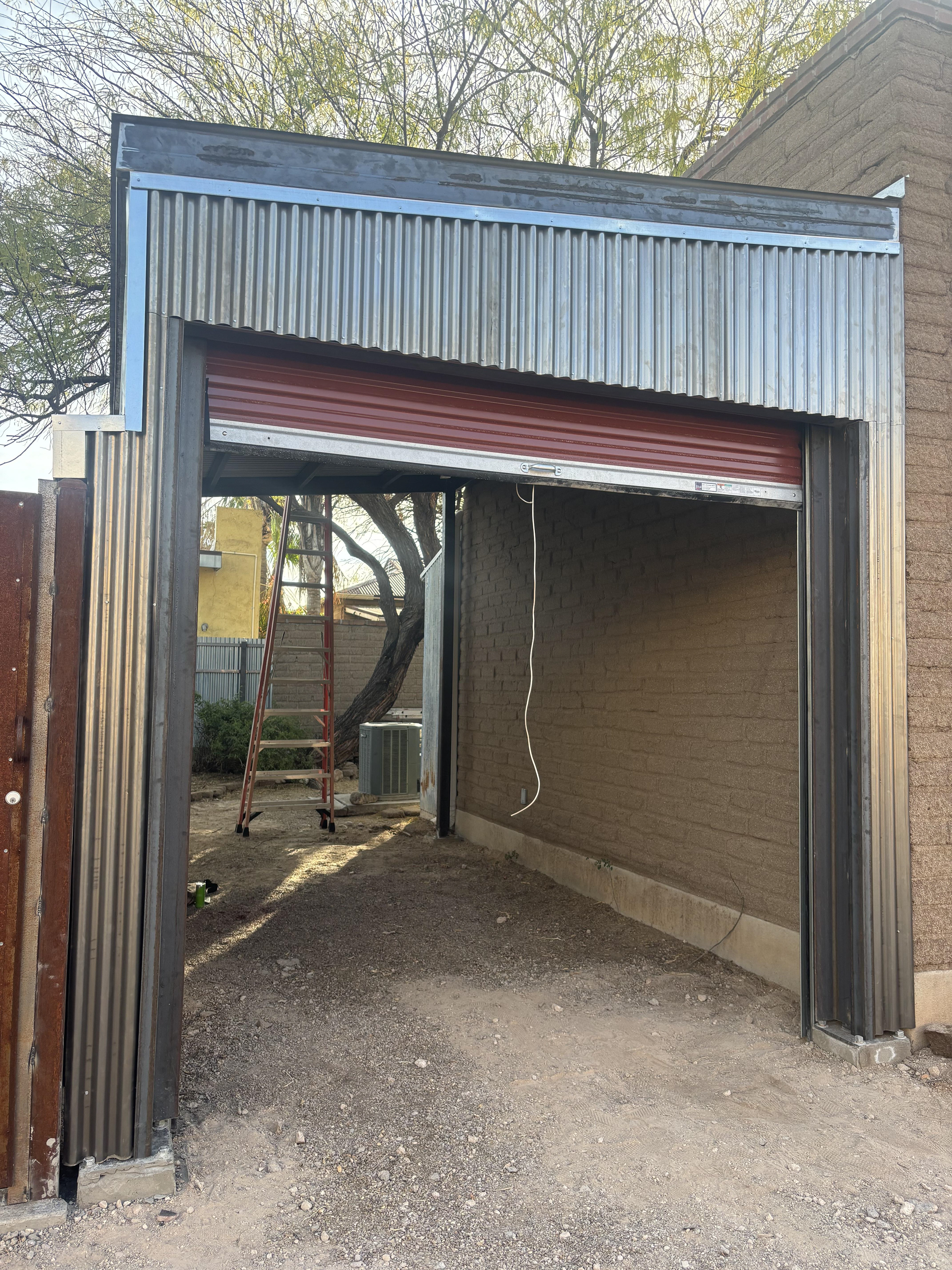 Covered carport with roll up door