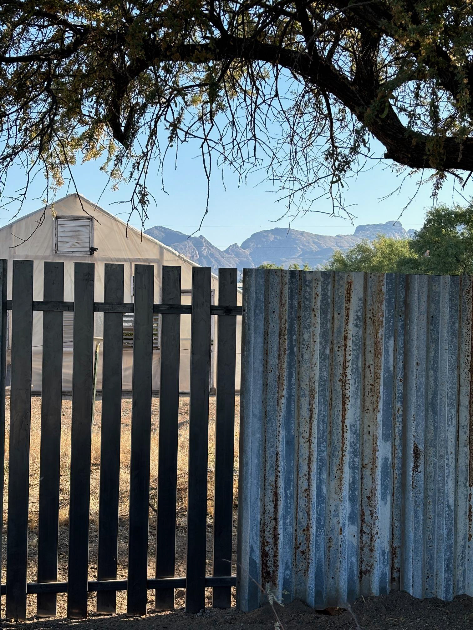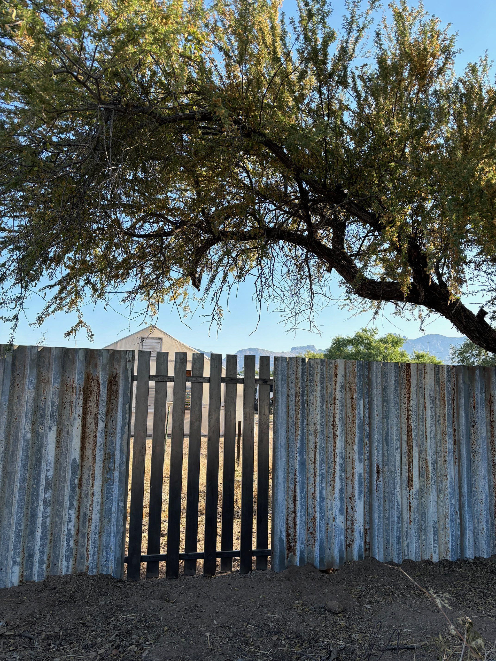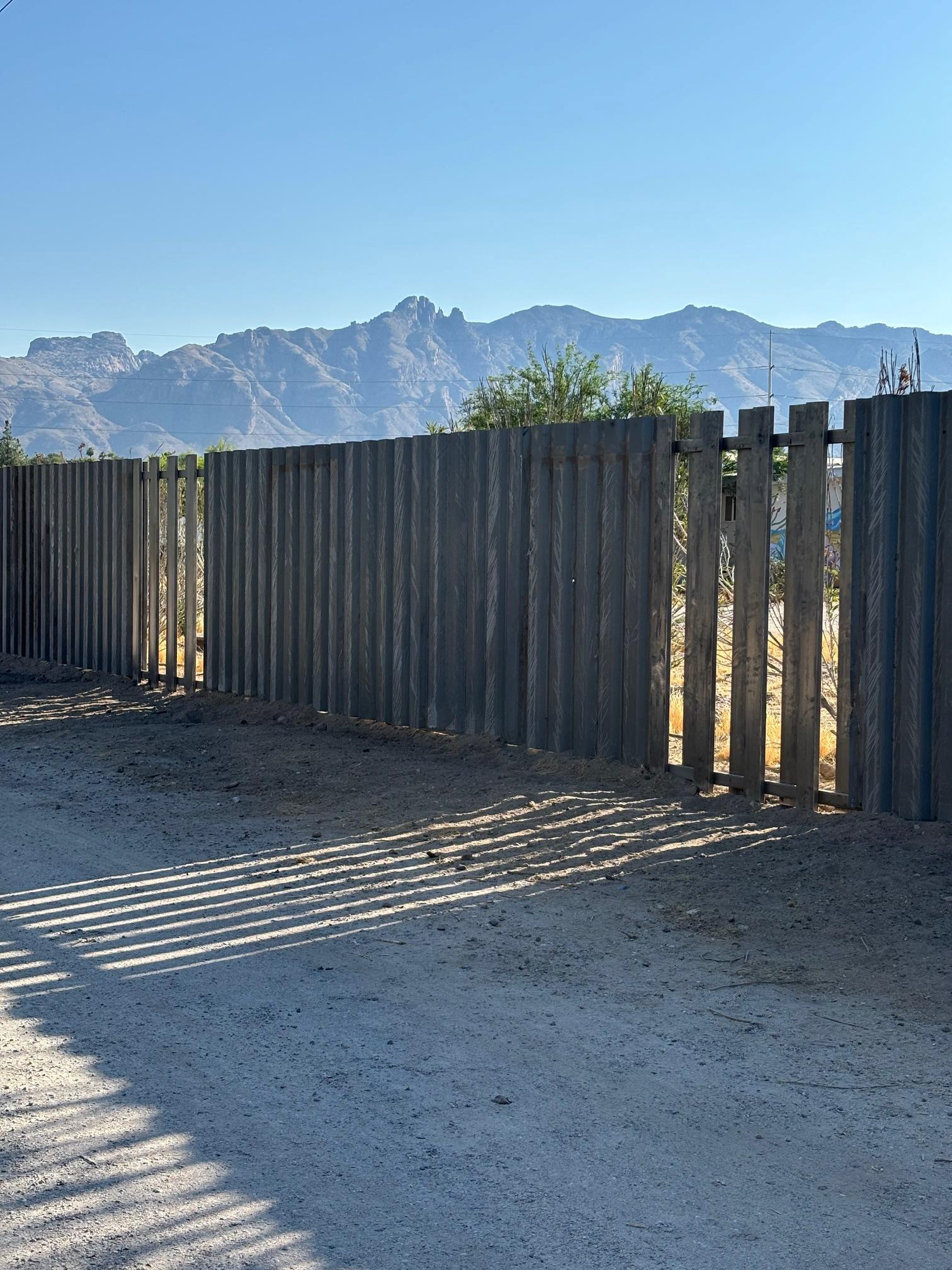 300 Linear feet of fencing using reclaimed metal and sections of chunky pickets